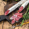 Salchichón is an air-cured sausage that resembles a traditional hard salami. Salchichón Sausage is produced from pork meat that is coarsely ground with salt black pepper. Chunks of ground peppercorns randomly distributed among the bits of fat are common throughout the hard texture of this Sausage.